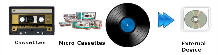 Digitize your cassette, Micro-cassettes, tapes and vinyl to CD,Flash Drive, External drive your choice today.